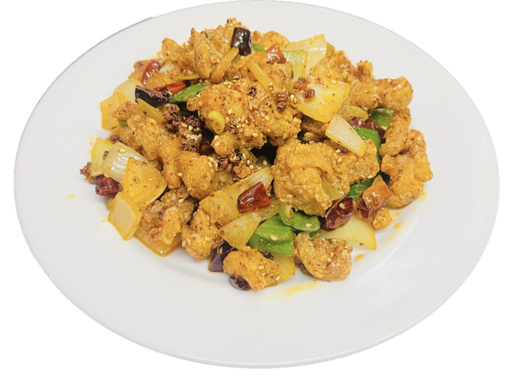 (一口大に切った肉をラー油入りの汁で煮込んだ典型的な四川料理で、唐辛子や花椒を使った辛い味付けの料理です。シメラーメンは、200円/1人前)